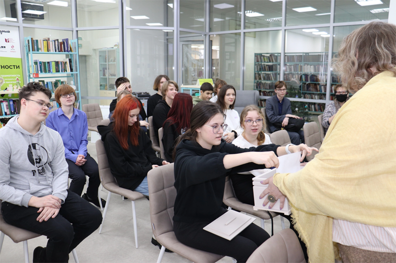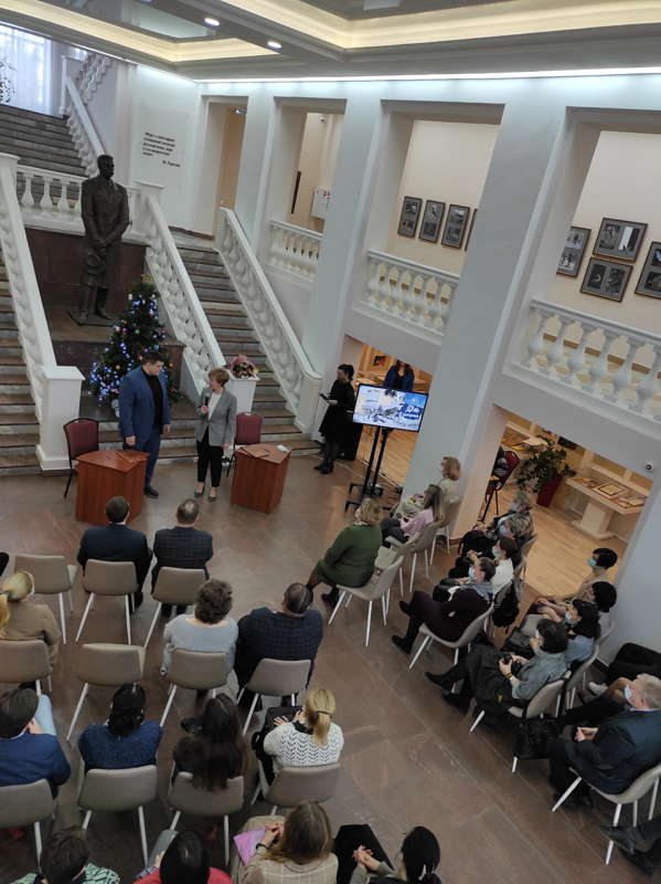 Заместитель директора библиотеки по социокультурной деятельности и связям с общественностью Ксения Александровна Чулкова рассказала о том, какие события ждут библиотеку и ее читателей в 2022 году, участники пресс-клуба обсудили перспективы сотрудничества и совместные проекты.