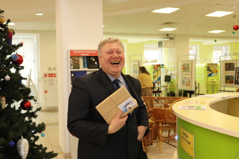 Всех читателей, посетивших в этот день библиотеку, ждали подарки – участие в беспроигрышной лотерее «Барабан желаний» и экскурсии по залам и экспозициям.
