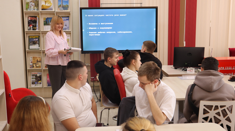В Центральной библиотеке имени Л.А. Малюгина, в рамках цикла мероприятий образовательной лаборатории русского языка «Мыслѐте», было организовано событие для студентов нефтегазового колледжа.