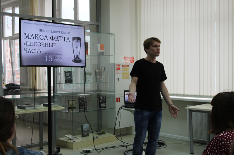 В библиотеке прошла встреча с молодым автором из города Сасова Максимом Холоповым, который пишет под псевдонимом Макс Фетт (псевдоним взят из фантастической эпопеи «Звездные войны»).