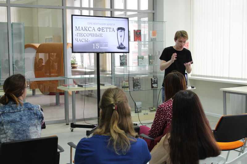 На встречу с Максом Феттом в библиотеку пришли молодые люди, увлекающиеся чтением фэнтези. Отвечая на вопросы аудитории, автор признался, что изучает психологию, увлекается театральным и танцевальным искусством, но самое главное – обожает писать книги. Это помогает ему обрести самого себя. Макс Фетт рассказал о том, как рождаются в его голове сюжеты для будущих произведений, и как книги по психологии помогают ему создавать интересные литературные образы.
