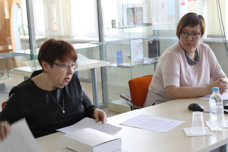 На семинаре обсуждались вопросы выявления и учета редких и ценных документов в фондах библиотек и музеев, методы превентивной консервации. Участникам была представлена презентация, раскрывающая особенности реставрации книжных памятников, на примере книги И.А. Крылова «Илья богатырь» 1807 года издания и методика по выявлению и экспонированию коллекции пушкинианы из фонда редких книг библиотеки им. Горького. Специалист Регионального центра консервации библиотечного фонда Л.П. Макарова провела практическое занятие по изготовлению микроклиматических контейнеров.
