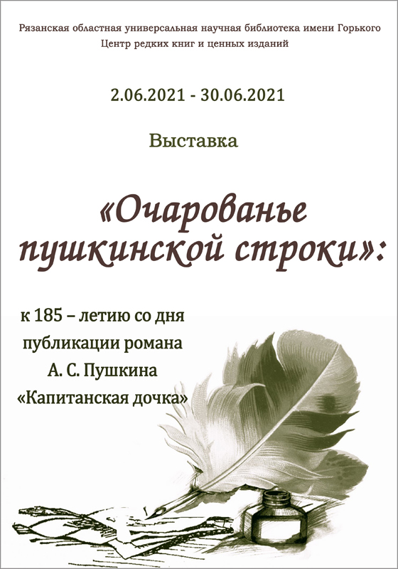 В читальном зале центра редких и ценных изданий открылась книжная выставка, подготовленная к 185-летию со дня публикации романа Александра Сергеевича Пушкина «Капитанская дочка». Впервые повесть была напечатана в четвертом номере журнала «Современник» в ноябре 1836 г.
