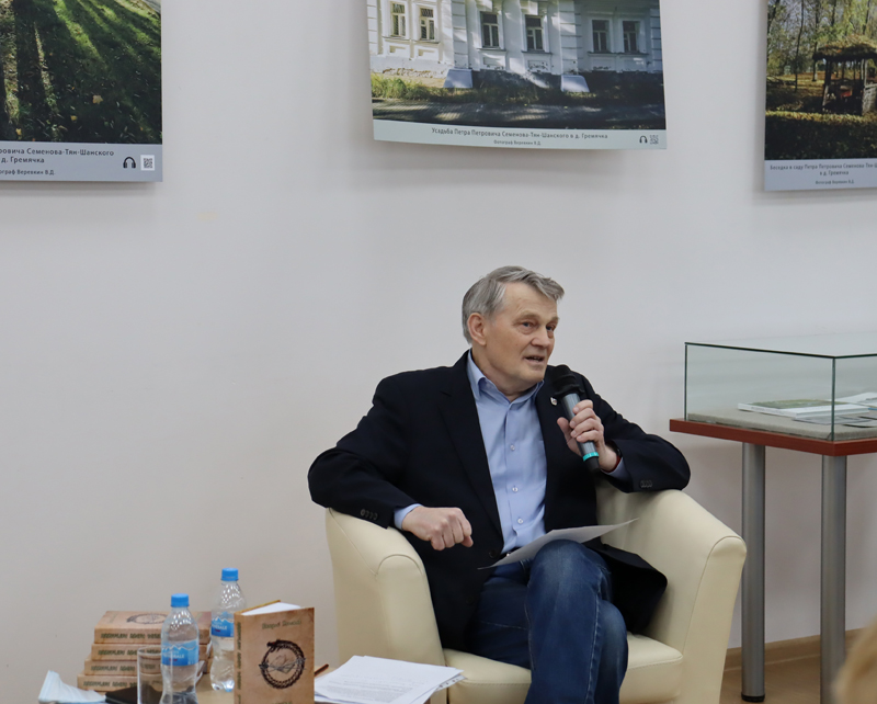 Заместитель директора по развитию библиотеки Светлана Винокурова поблагодарила писателя за многолетнее сотрудничество с библиотекой имени Горького и за книги, которые он передал в дар в ее фонд.