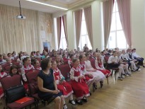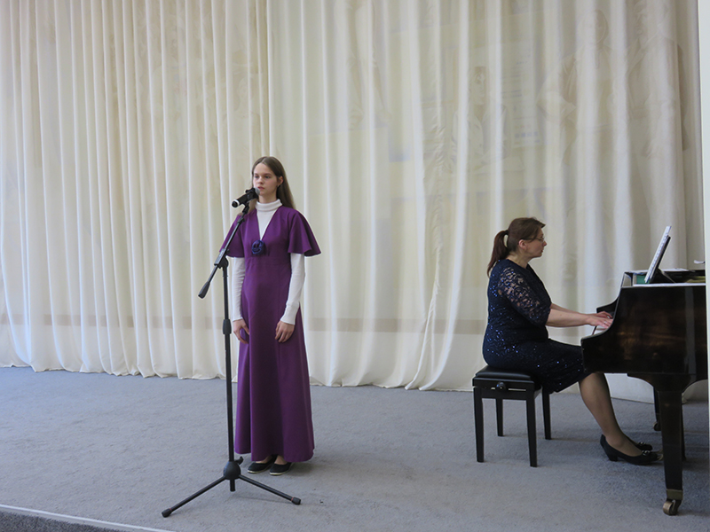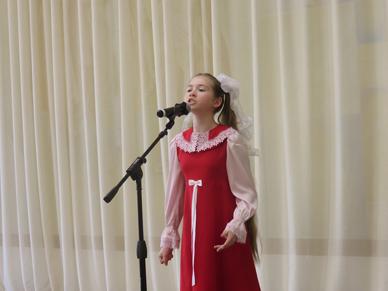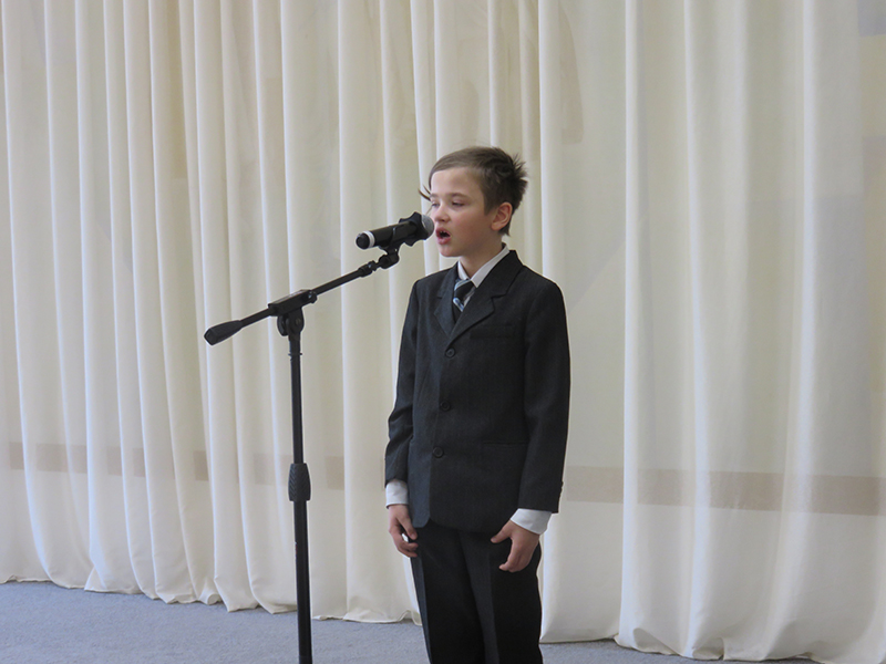 На концерте выступили хоровые коллективы школы: хор первого класса, (руководитель – Т.В. Цыганкова, концертмейстер – Е.В. Фоменко), младший хор «Капель», ансамбль старшего хора (руководитель – Н.Г. Юдаева, концертмейстер – Е.В. Фоменко) и юные солисты, исполнившие знаменитые песни композитора под аккомпанемент Е.В. Фоменко и В.Н. Былинкина.