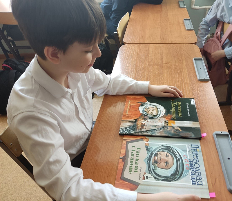 В преддверии празднования Дня космонавтики и 90-летия со дня рождения Юрия Алексеевича Гагарина библиотекарь кафедры детской литературы провела познавательный час для учащиеся 4-го класса школы № 73. Имя Юрия Алексеевича Гагарина навечно связано с космической эпохой, с эрой освоения звездного пространства. С него начался бесконечный путь во Вселенную.