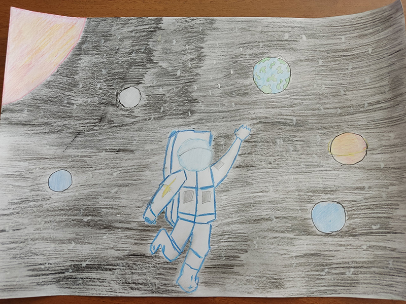 Далее ребята разгадывали космические загадки, смотрели кадры исторической кинопленки и рисовали на космическую тему.