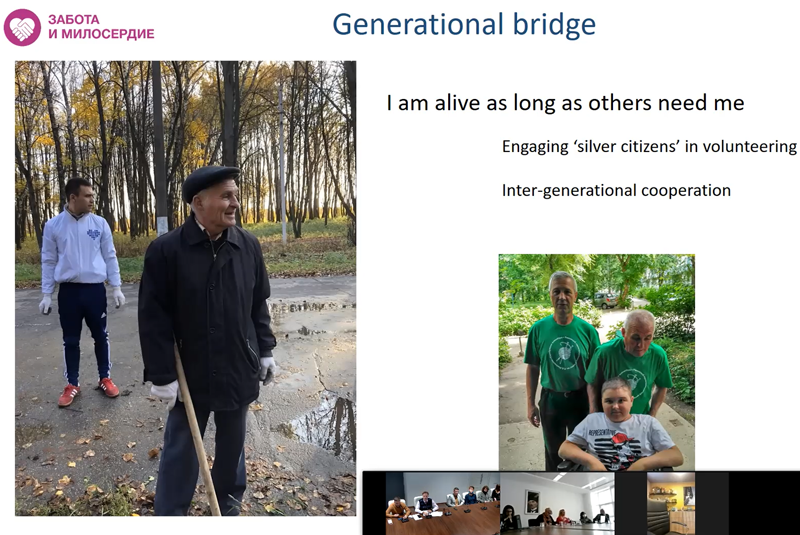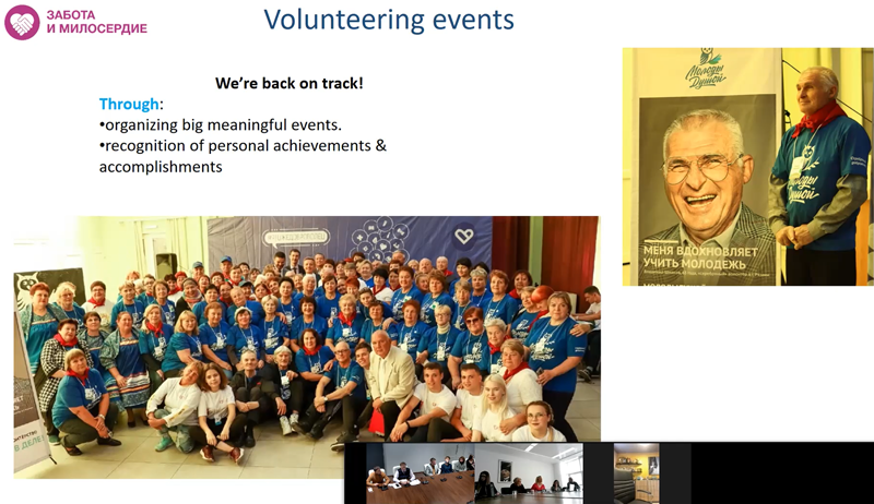 С российской стороны с докладами выступили Евгения Решетина (руководитель Ресурсного центра поддержки добровольчества Рязанской области), Юрий Пинигин (руководитель Рязанского городского волонтерского центра, председатель комиссии по молодежной политике, развитию добровольчества и патриотическому воспитанию Общественной палаты города Рязани), Алексей Кованов (директор АНО по предоставлению социальных услуг «Забота и Милосердие») и Дарья Фролова (региональный координатор Всероссийского общественного движения «Волонтеры культуры»). Модератором-переводчиком выступал Александр Селиванов.