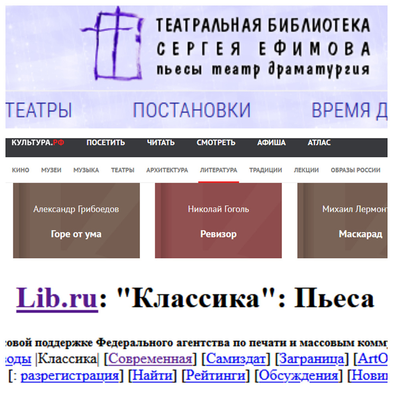Предлагаем читателям подборку ресурсов, где размещены полнотекстовые коллекции пьес в электронном виде. Они позволят вам познакомиться с произведениями классиков и найти чтение по душе, погрузиться в волшебный мир театра.