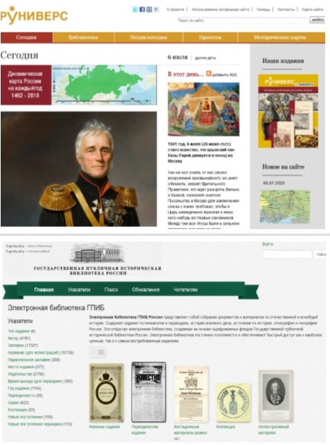 Он предлагает большую открытую электронную библиотеку исторических изданий и документов, а также энциклопедию, которая содержит профессиональные статьи со ссылками на документы библиотеки.