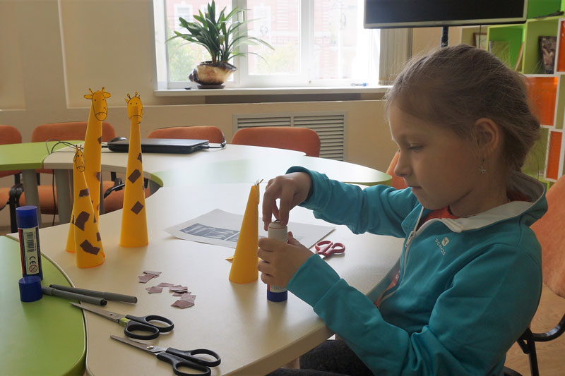 Очень увлекательное и интересное занятие прошло в «Сказочном домике». Девочки – гости «домика» – научились мастерить оригинальных жирафов из бумаги, которые станут замечательным декором детской комнаты.