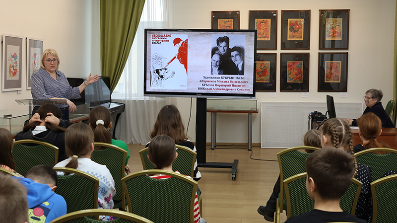 Сотрудники Центра литературы по искусству продолжили цикл мероприятий «Искусство против войны», приуроченных к празднованию 80-летия Победы в Великой Отечественной войне и к Году защитника Отечества. Встреча с учениками 5 класса 14 школы г. Рязани была посвящена вкладу художников-фронтовиков в приближение долгожданной Победы.