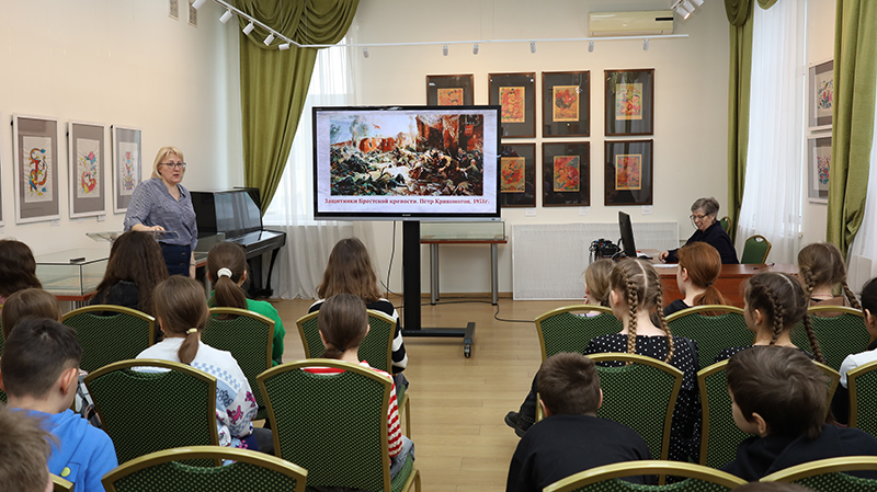 Мальчишки и девчонки познакомились с историей создания знаменитого плаката Ираклия Тоидзе «Родина-мать зовёт!», узнали о защитниках Брестской крепости, подвиг которых запечатлел на своей картине художник Петр Кривоногов. Особый интерес вызвал видеосюжет о работе целого батальона художников во время маскировки Москвы летом 1941 года.