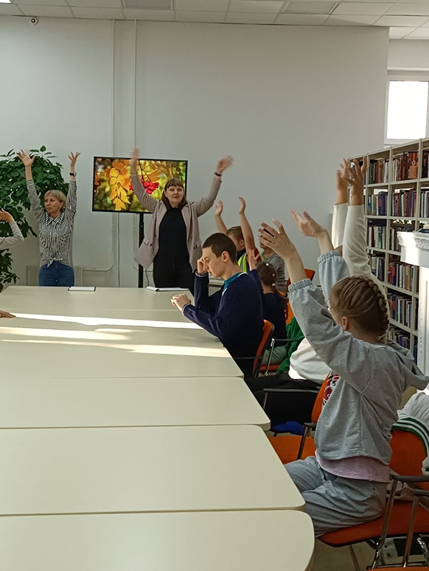 Библиотекари провели для детей интерактивную программу «Осень золотая». Ребята познакомились с осенними приметами, узнали, с какого дерева листья облетают первыми, какие животные приносят потомство в конце года, отгадали загадки, послушали веселые детские песенки, прогулялись по осеннему лесу и сделали зарядку, посмотрели мультфильм.
