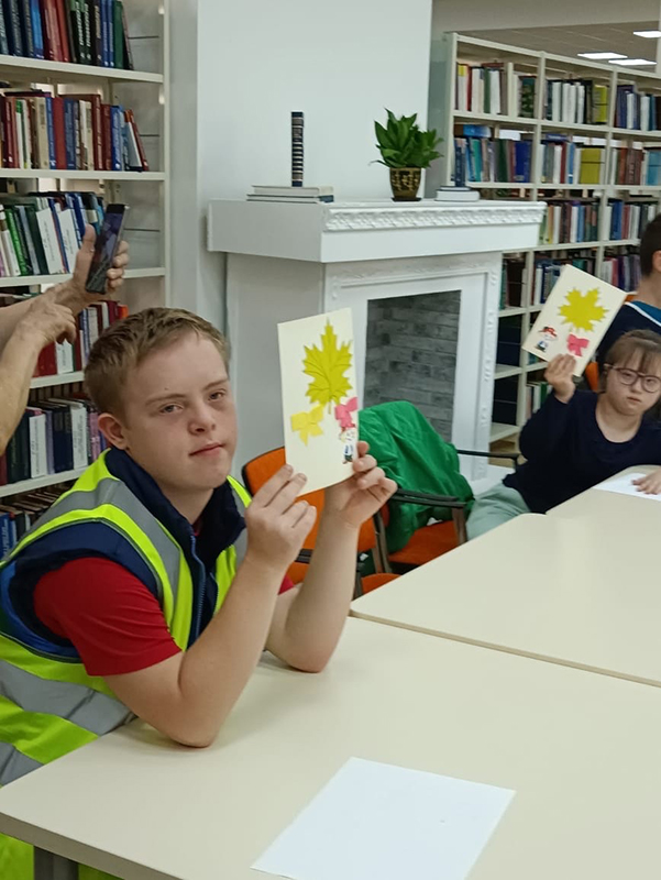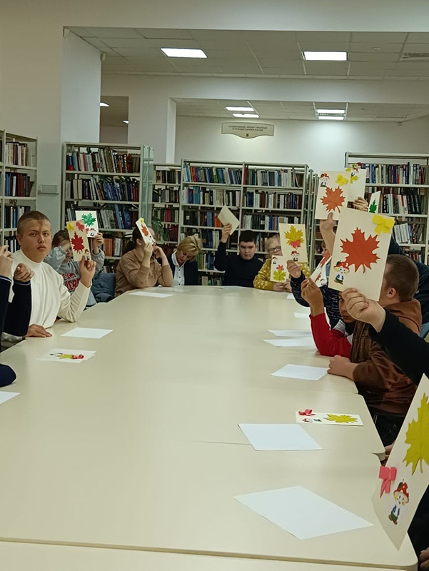 На память о встрече с библиотекой мальчишки и девчонки изготовили своими руками осенние открытки.