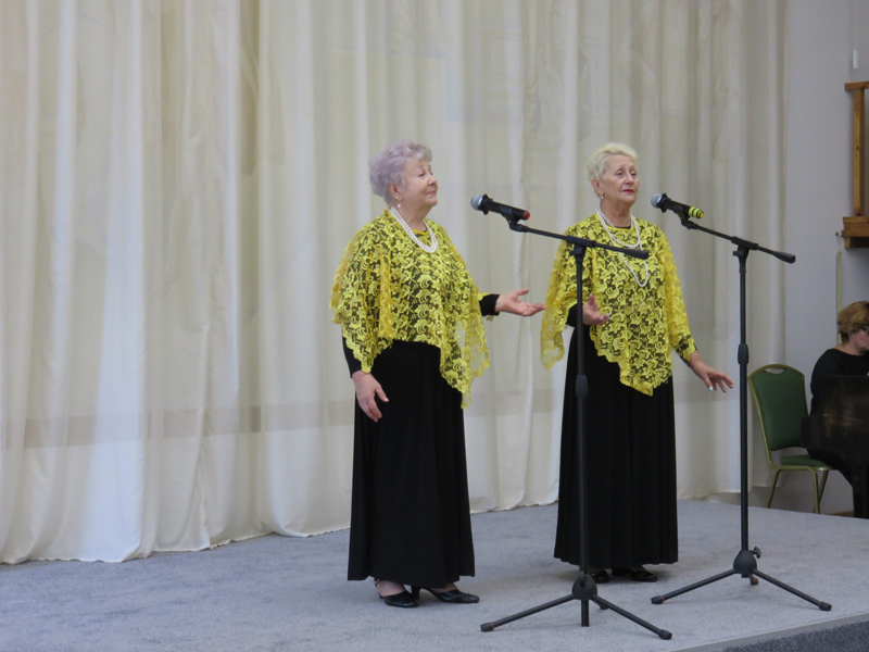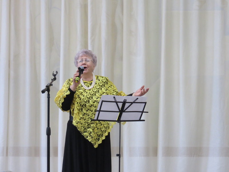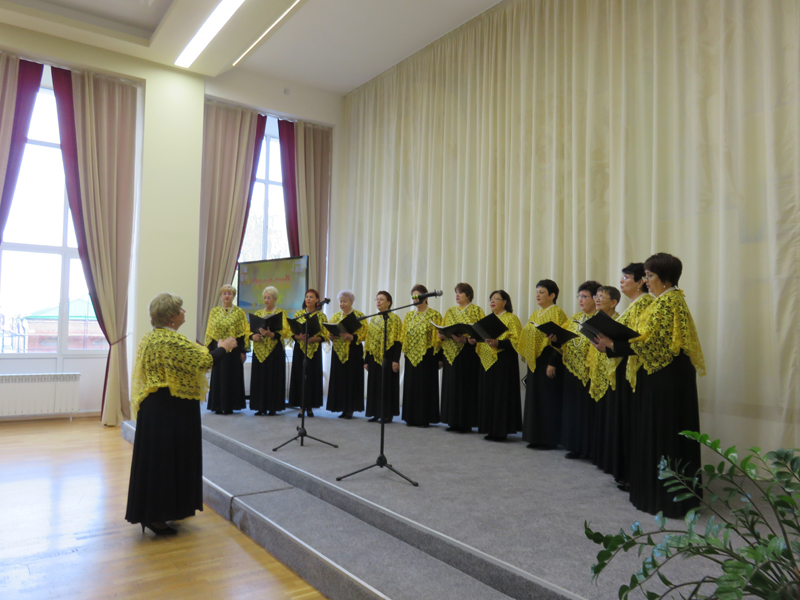 Проникновенно звучали песни в исполнении других солистов хора – Татьяны Ивашкиной, Людмилы Бабиной, Татьяны Петровичевой, Людмилы Суляевой: «Русский вальс» (А. Пахмутова), «Под луной золотой» (И. Дунаевский), «Скоро осень» (Я. Френкель), «Белый танец» (Д. Тухманов).