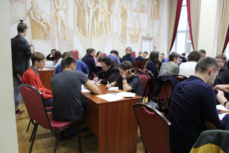 В большом конференц-зале библиотеки им. Горького состоялся Третий чемпионат Рязани по интеллектуальной игре «Что? Где? Когда?».