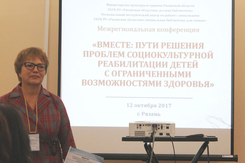 Мероприятие для специалистов региональных библиотек, работающих с такими детьми, состоялось в Рязанской областной детской библиотеке. Организаторы: Рязанская областная детская библиотека (РОДБ) и Рязанская областная специальная библиотека для слепых (РОСБС). Открыли конференцию директор РОДБ Татьяна Николаевна Окружная и заместитель директора РОСБС Лариса Георгиевна Волкова.