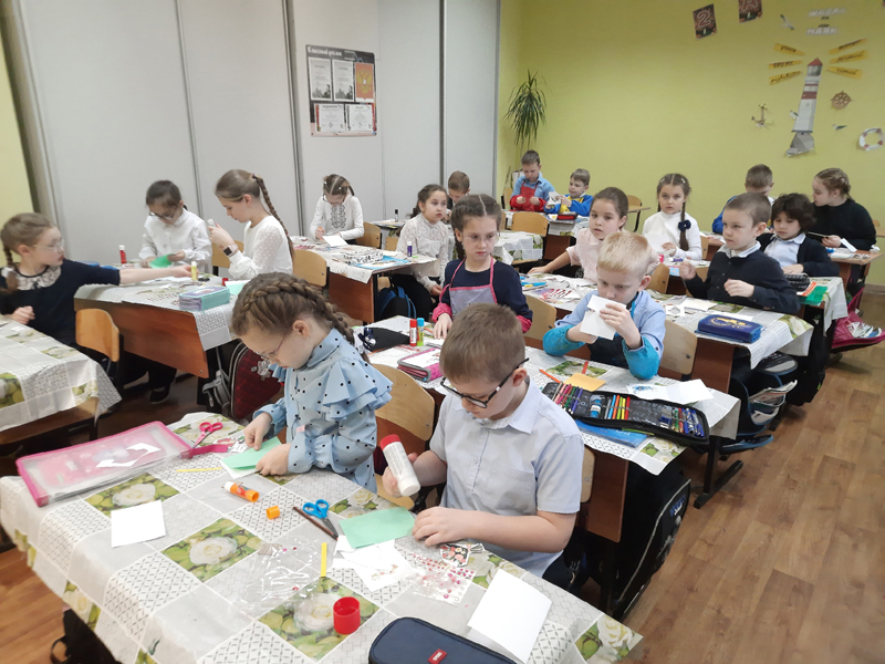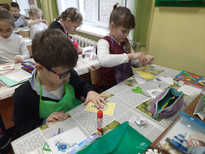 Мальчишки и девчонки вспоминали ласковые слова в адрес матерей, как можно проявить свою заботу, какие подарки будут уместны на этом празднике. Во время изготовления поздравительной открытки ученики старались сохранить структуру открытки, её композицию, баланс декоративных элементов.