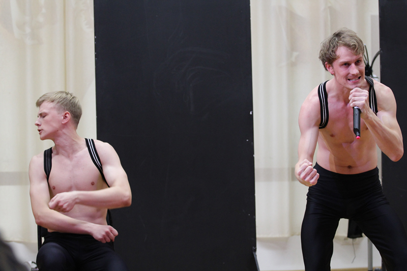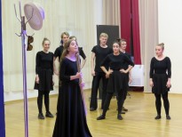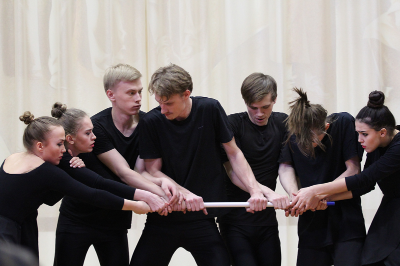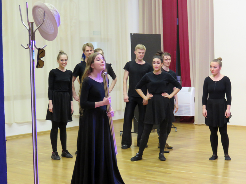 Класс-концерт – это не просто спектакль и не просто представление, это энергичное шоу, позволяющее понять и увидеть, чем дышат, о чем мечтают, кому подражают будущие артисты. Он состоит из блоков, включающих в себя короткие мини-зарисовки, этюды, при помощи которых преподается театральная наука. Первый блок был посвящен сценическому движению – работе с предметом, с партнером. Следующий блок рассказывал о трансформации, моментальном переключении, переходе из одного состояния в другое, смене предлагаемых обстоятельств. Основу актерского творчества составляет главная его идея – перевоплощение. Именно эту идею демонстрировал блок «Подражание», в котором актер полностью погружался в мир иллюзий, в атмосферу событий и обстоятельств, в облик и манеру поведения героя.
