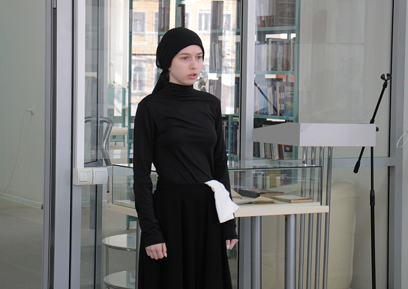 Ксения Кудрявцева и Ксения Ковалева – учащиеся Центра эстетического воспитания детей – показали отрывок из пьесы А.Н. Островского «Свои люди – сочтемся». Актриса и педагог молодежного театра-студии «Шанс» Анастасия Косичкина прочитала монолог из пьесы «Волки и овцы». Школьники выразили желание встретиться вновь, чтобы окунуться в театральный мир русской классики.