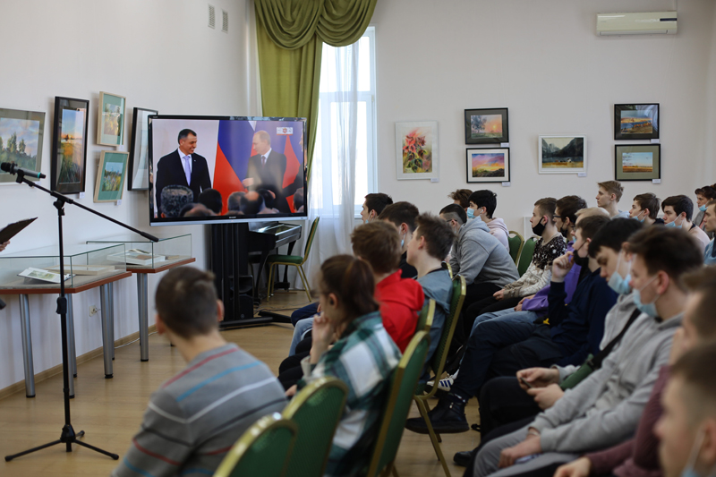 В преддверии восьмой годовщины воссоединения Крыма с Россией сотрудники библиотеки имени Горького представили для учащихся Рязанского автотранспортного техникума имени С. А. Живаго литературную программу «О, прекрасны вы, брега Тавриды...».