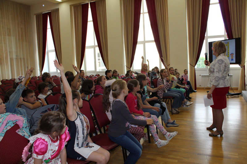 В музыкальном библиоуроке, посвященном песенному творчеству композитора В.Я. Шаинского, приняли участие ребята из детского оздоровительного лагеря школы № 7 г. Рязани.