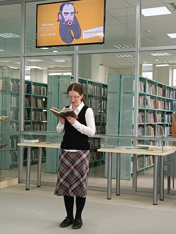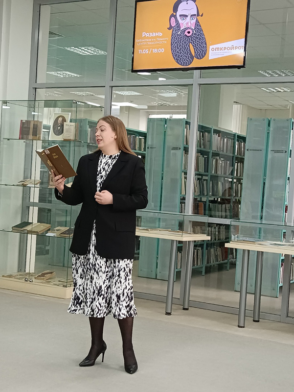 11 мая в центре грамотности Рязанской областной универсальной научной библиотеки имени Горького прошел региональный отборочный тур сезона 2022–2023 гг. чемпионата России по чтению вслух на русском языке «Открой рот». Организатор чемпионата – Ассоциация «Межрегиональная федерация чтения».