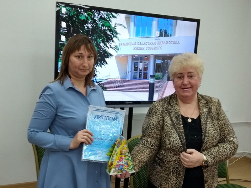 Тамара Михайловна Данилина вручила почетную грамоту Наталье Самандиной за активную работу в профсоюзе работников культуры и дипломы участникам конкурса «Новогодняя открытка».