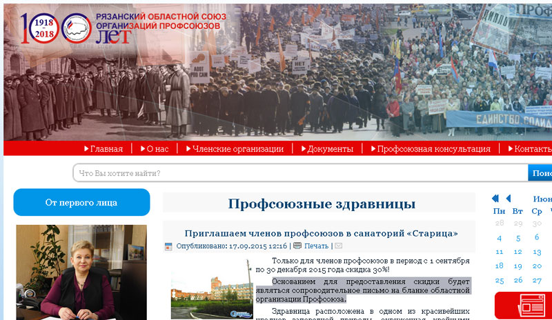 Полезная информация также размещена на сайте Рязанского областного союза организаций профсоюзов (раздел «Профсоюзные здравницы». Режим доступа: http://ryazprof.ru/profsoyuznye-zdravnitsy).