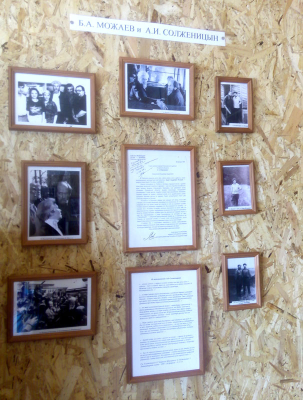 «Человек с чистой совестью и чистой жизнью», − так охарактеризовал Бориса Андреевича Можаева Александр Исаевич Солженицын. В разделе, посвященном дружбе двух писателей, представлены: письмо А.И. Солженицына, написанное им в 1998 году на имя главы Пителинского района, в котором он обращается с просьбой к пителинцам об увековечении памяти писателя на родной земле; совместные фотографии Можаева с Солженицыным; очерк А.И. Солженицына «С Борисом Можаевым»; очерк Б. Можаева «Я знал Солженицына без бороды».