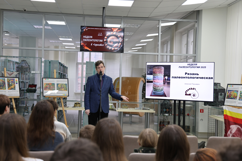 В рамках открытия прошла лекция Алексея Валентиновича Пахневича «Рязань палеонтологическая» о древних животных и растениях, населявших Рязанскую землю миллионы лет назад.