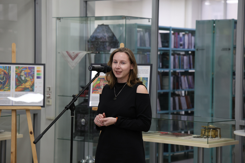 Была представлена уникальная серия картин «Лица российской палеонтологии» в стиле «палеоарт». Автор произведений – профессиональная художница из Москвы, специалист по графическому дизайну, участник палеонтологических экспедиций Надежда Липатова познакомила присутствующих с тонкостями работы в стиле «палеоарт» и с концепцией выставки.
