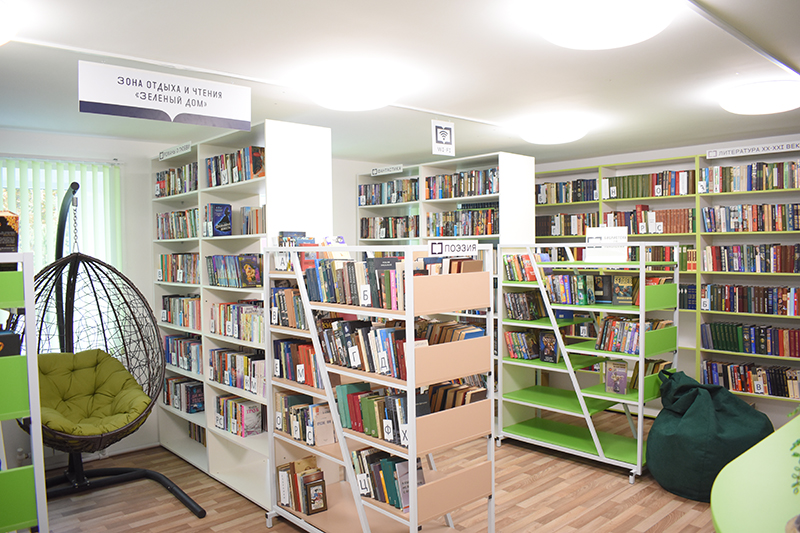 Каждая из библиотечных зон связана с тем или иным произведением Бориса Можаева. Например, музейная комната, посвященная знаменитому земляку, названа по его повести «Живой». Природные мотивы в интерьере музейной комнаты погружают посетителей в атмосферу, в которой родился и вырос писатель, откуда берет истоки его творчество. Также и другие зоны связаны с творчеством писателя: «По дороге в Мещеру», «Дождь будет», «Зеленый дом», «Запах мяты и хлеб насущный», «Экология литературы», «Старые истории».