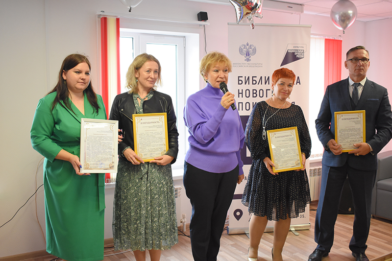 Заслуженный работник культуры Российской Федерации, председатель Общественной палаты Рязанской области, руководитель регионального проектного офиса национального проекта «Культура» по модернизации библиотек в Рязанской области, директор Рязанской областной универсальной научной библиотеки им. Горького Наталья Николаевна Гришина поблагодарила коллектив библиотеки за проведенную работу и поздравила читателей, детей, их родителей с открытием библиотеки.
