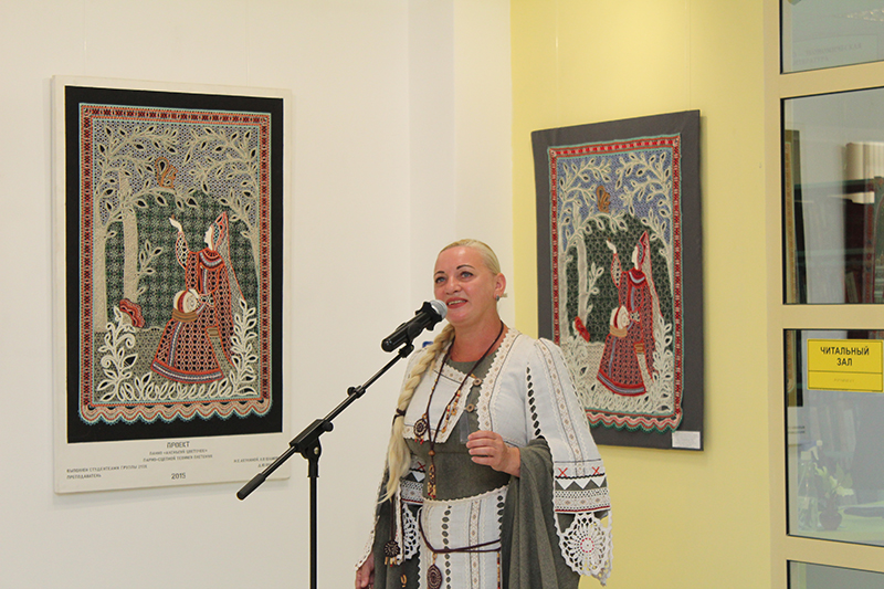 С приветственным словом выступила председатель Общественной палаты Рязанской области, председатель областного Совета женщин, директор Рязанской областной универсальной научной библиотеки имени Горького Наталья Гришина. Наталья Николаевна отметила, что данная выставка – не первый проект Рязанского филиала Высшей школы народных искусств, представленный на площадке библиотеки. Преподаватели и студенты академии сохраняют культурные традиции рязанской земли. Несмотря на то, что студенты находятся только вначале творческого пути, их работы выполнены на высоком уровне и не уступают по исполнению изделиям опытных мастеров, что может удивить зрителя.