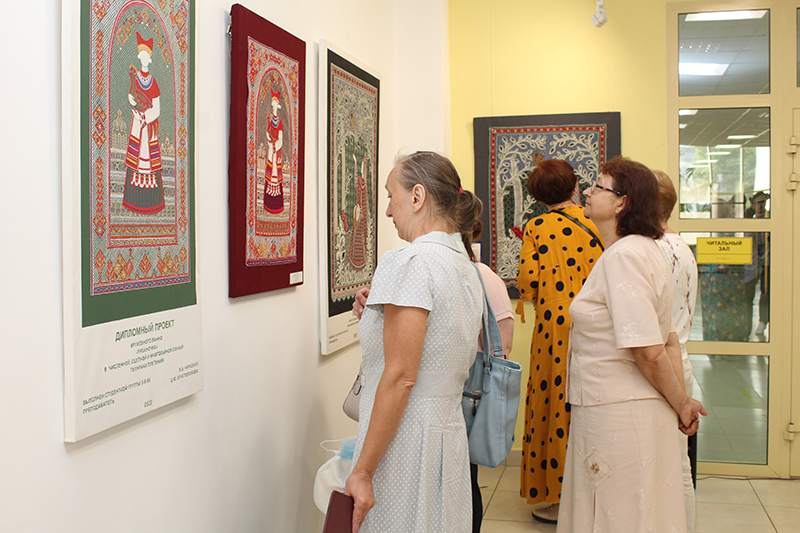 25 июля в Экспозиционном зале библиотеки имени Горького состоялось открытие выставки «Идеи. Замыслы. Воплощение». Осуществление этого проекта стало возможным, благодаря добрым партнерским отношениям между библиотекой имени Горького, региональным отделением Союза женщин России и Рязанским филиалом Высшей школы народных искусств (академией).