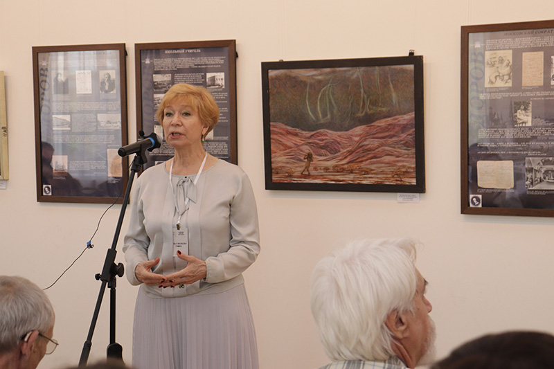 Доктор филологических наук, заведующая отделом новейшей русской литературы и литературы русского зарубежья ИМЛИ РАН и Центром исследований космизма МВШСЭН, научный сотрудник, главный библиотекарь Библиотеки № 180 имени Н.Ф. Федорова Анастасия Георгиевна Гачева поздравила организаторов выставки с созданием прекрасной экспозиции, раскрывающей основную идею «Философии общего дела» Н.Ф. Федорова от истоков до последователей в науке и искусстве.