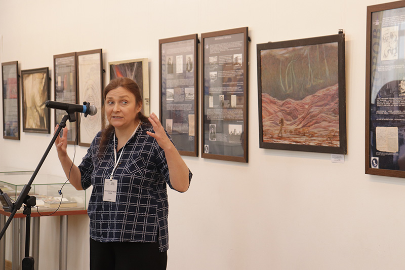 В заключение церемонии открытия М.А. Абрамова сделала краткий обзор по экспозиции выставки.