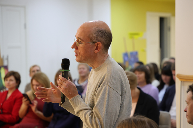 После торжественного открытия выставки культурная общественность Рязани, студенты Рязанского художественного училища имени Г.К. Вагнера, гости мероприятия задавали вопросы Евгению Викторовичу. Их интересовало, кто является музой, что вдохновляет художника. По словам Евгения, важную роль в его творчестве занимает поддержка семьи.
