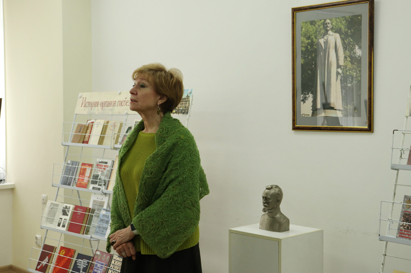 Николай Семенович Попов рассказал об экспонатах и книгах, представленных на выставке, а также об истории создания и деятельности ведомства в годы укрепления Советского государства, во время Великой Отечественной и холодной войн.