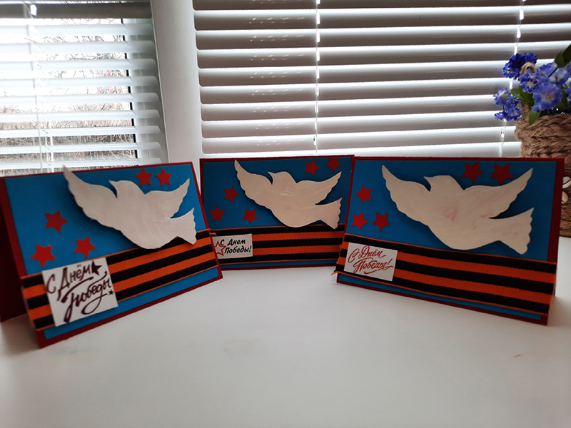 Наша библиотека вместе с учениками Рязанской школы-интерната приняли участие в международном конкурсе рисунков «Открытка Победы», в разделе «Декоративно-прикладное творчество». Для воспитанников интерната мы подготовили мастер-класс по изготовлению открытки с голубем мира, используя традиционные для нашего флага цвета - белый, красный, голубой.