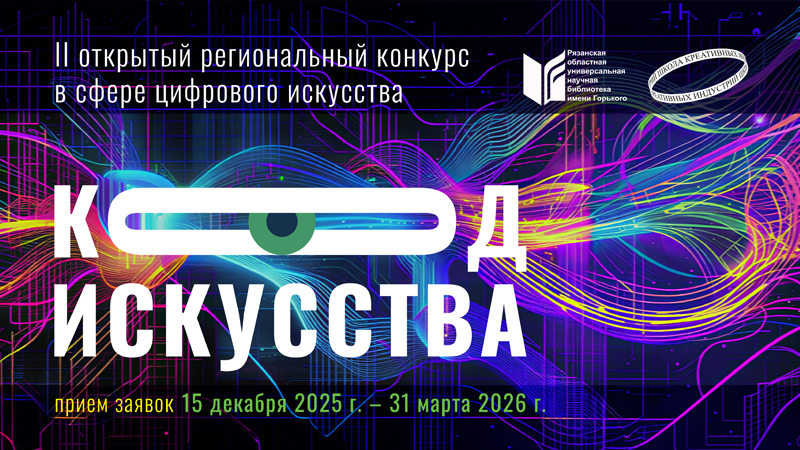 Рязанская областная универсальная научная библиотека имени Горького объявляет о начале II Открытого регионального конкурса в сфере цифрового искусства «Код искусства».