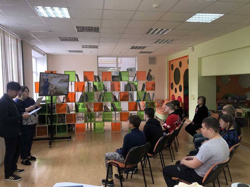 27 мая 2022 года в библиотеке им. Горького сотрудники отдела молодежных проектов и волонтерской деятельности библиотеки им. Горького провели открытый урок на тему человеческого подвига по произведению Б.Н. Полевого «Повесть о настоящем человеке» для учащихся школы №10.