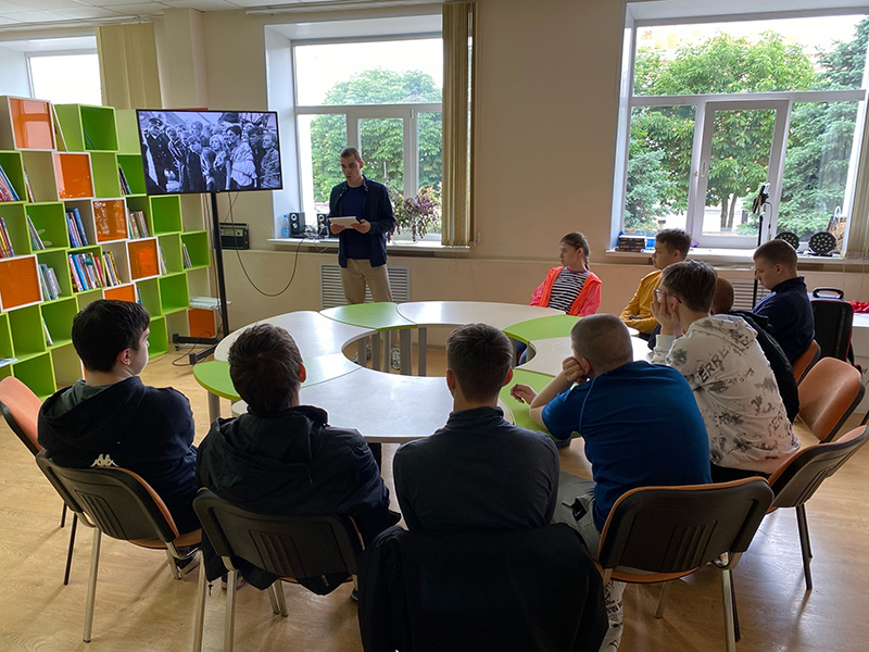 26 мая в библиотеке имени Горького сотрудники отдела молодежных проектов и волонтерской деятельности провели открытый урок для учащихся школы № 10 по произведению Александра Фадеева «Молодая гвардия».