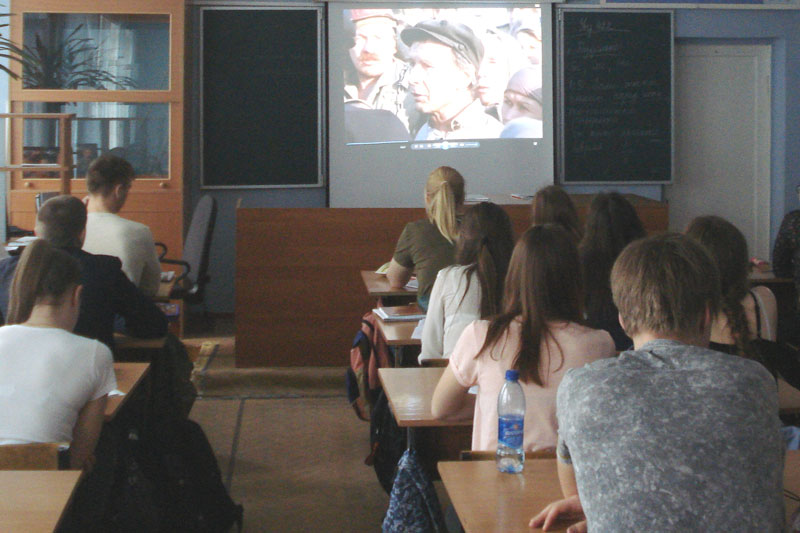 С большим интересом ребята посмотрели отрывки из художественных фильмов «Уроки французского», «Живи и помни», «Прощание», фрагмент фильма-спектакля «Деньги для Марии». В заключение встречи собравшиеся пришли к выводу, что важно не забывать свои корни, любить землю, на которой ты родился и вырос.