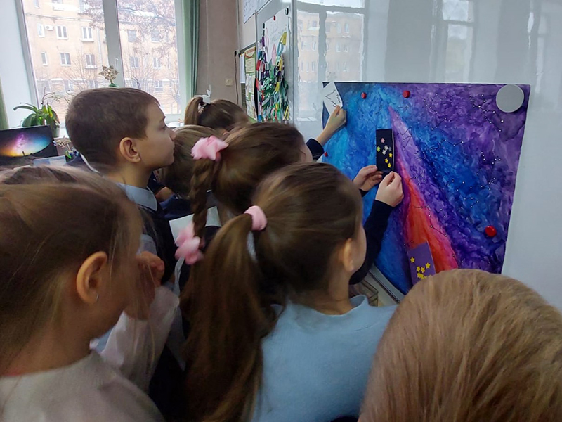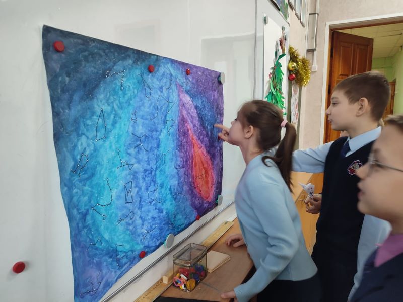 В ходе урока «Над нами – звездное небо» ребята совершили путешествие в историю: познакомились с представлениями древних народов о Вселенной, узнали, какие предположения о ее строении делали древнегреческие ученые.