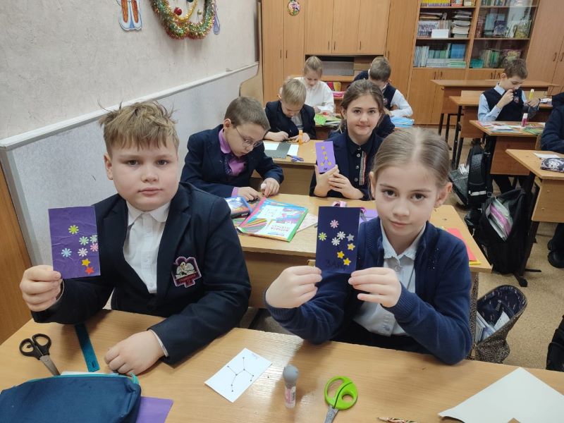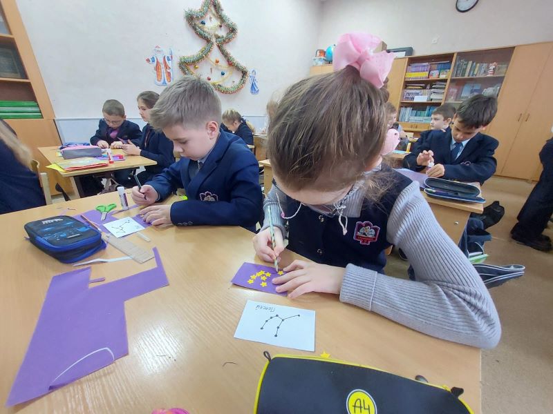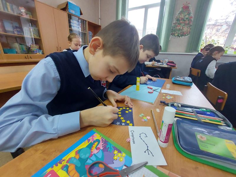 Завершилось мероприятие изготовлением книжных закладок с изображением созвездий.