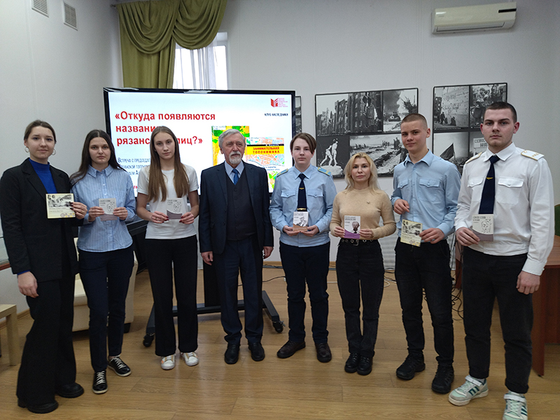25 января состоялось занятие молодежного клуба краеведов «Наследники», на котором встретились учащиеся 7-й, 50-й и 65-й школ, медицинского и железнодорожного колледжей города Рязани с председателем Рязанской топонимической комиссии Николаем Александровичем Булычевым.