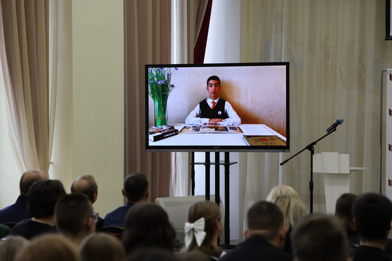 Ученик 7 класса школы № 67, лауреат всероссийских и региональных конкурсов приготовил свой музыкальный подарок для зрителей и для своего отца, участника Специальной военной операции Алексея Муракаева. В его исполнении прозвучали песни «Письмо солдату» и «Я вернусь победителем». Музыкальный руководитель – Ольга Дмитриевна Ситникова.